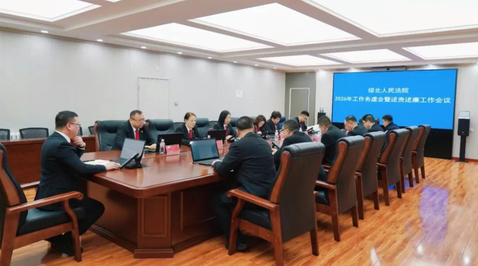 1月29日,绥北人民法院召开2026年工作务虚会暨述责述廉工作会议。党组书记、院长张明杰主持会议并讲话,院领导班子成员及各庭室负责人参会。