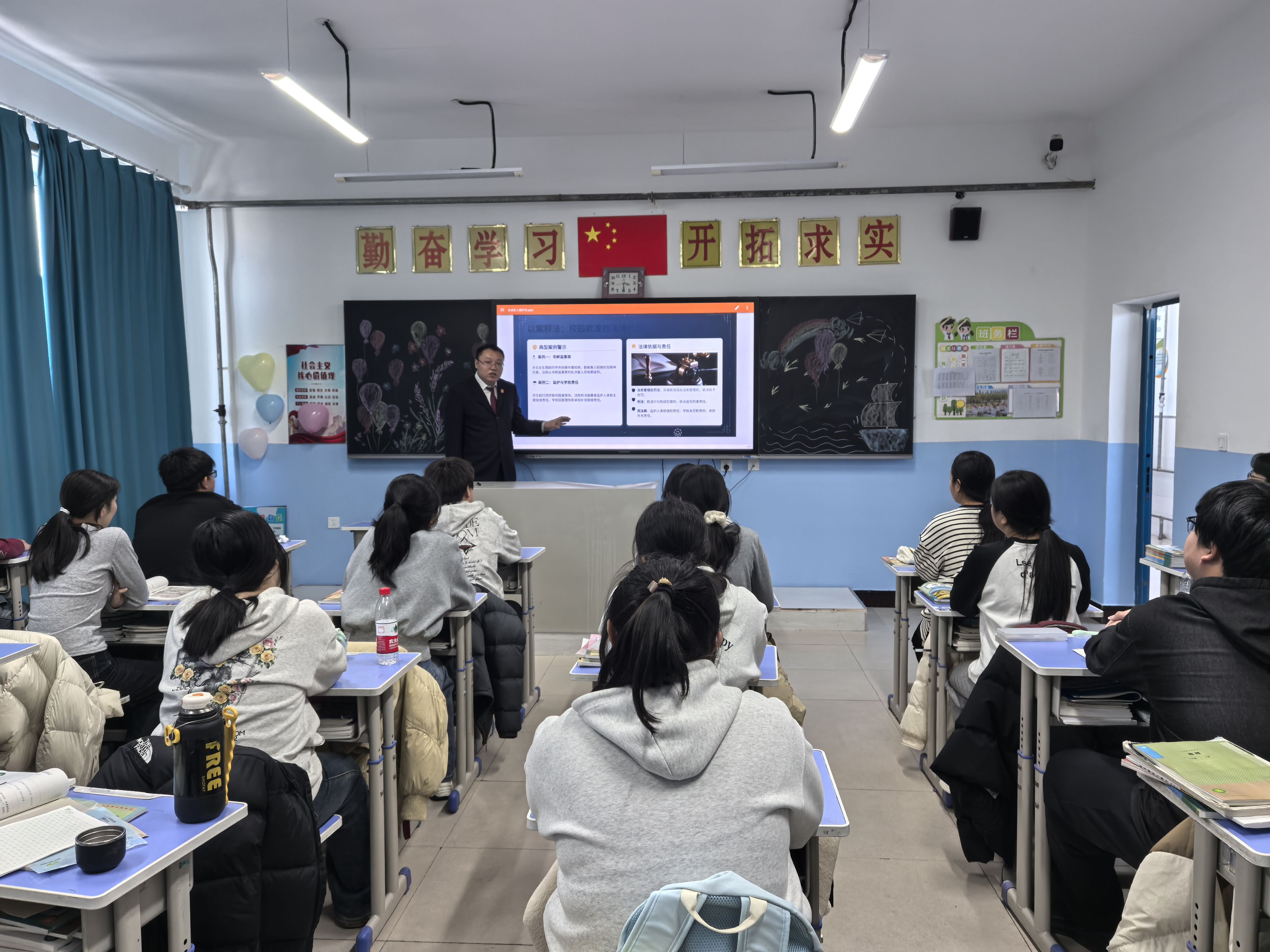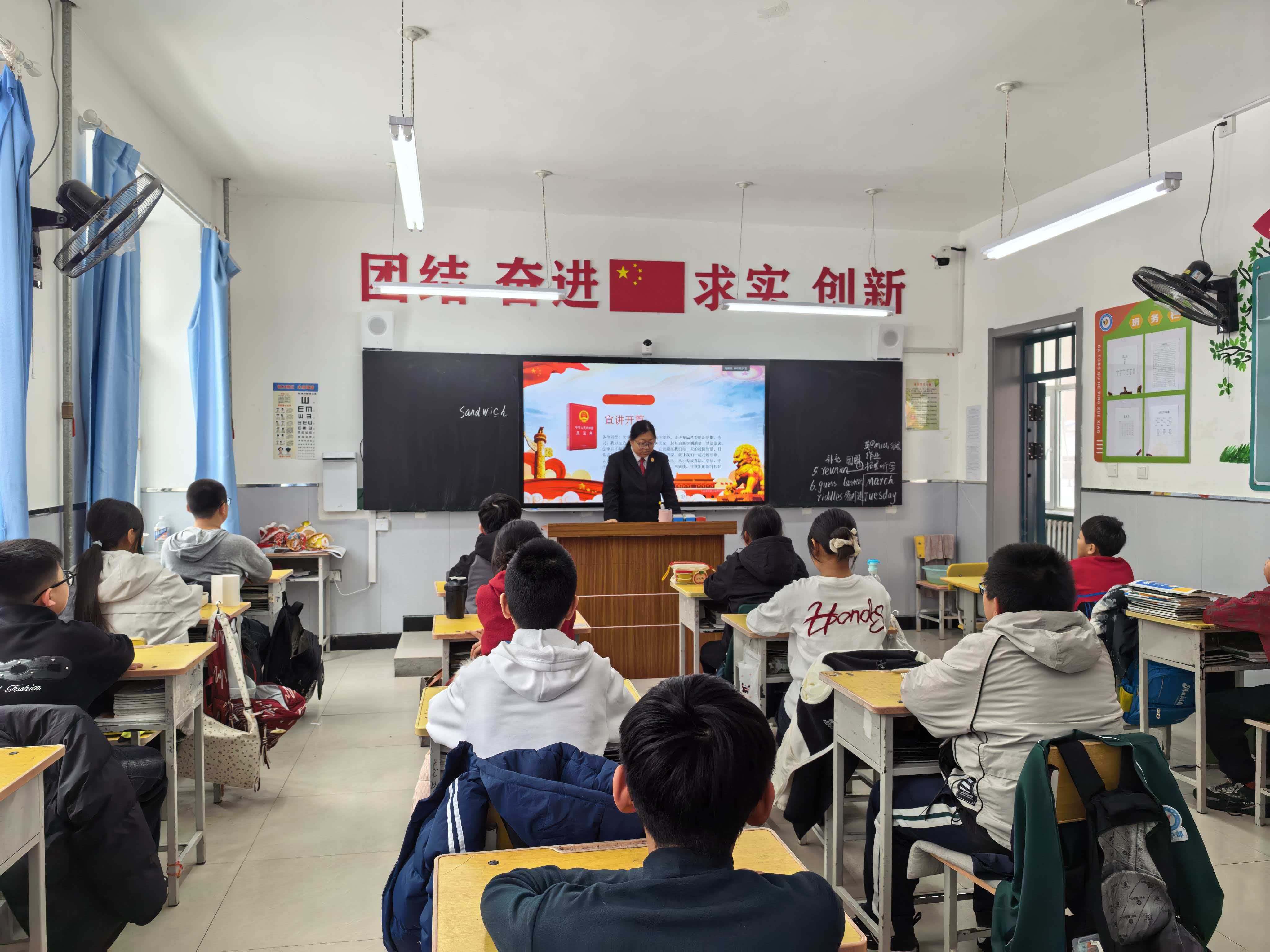 和平人民法庭干警来到大庆市大同区和平学校,干警结合实际案例,深入浅出地讲解法律规范与日常生活的密切联系,引导同学们尊法、学法、守法、用法。同学们认真聆听、积极思考,主动举手提问,现场互动氛围浓厚,取得了良好的法治教育效果。